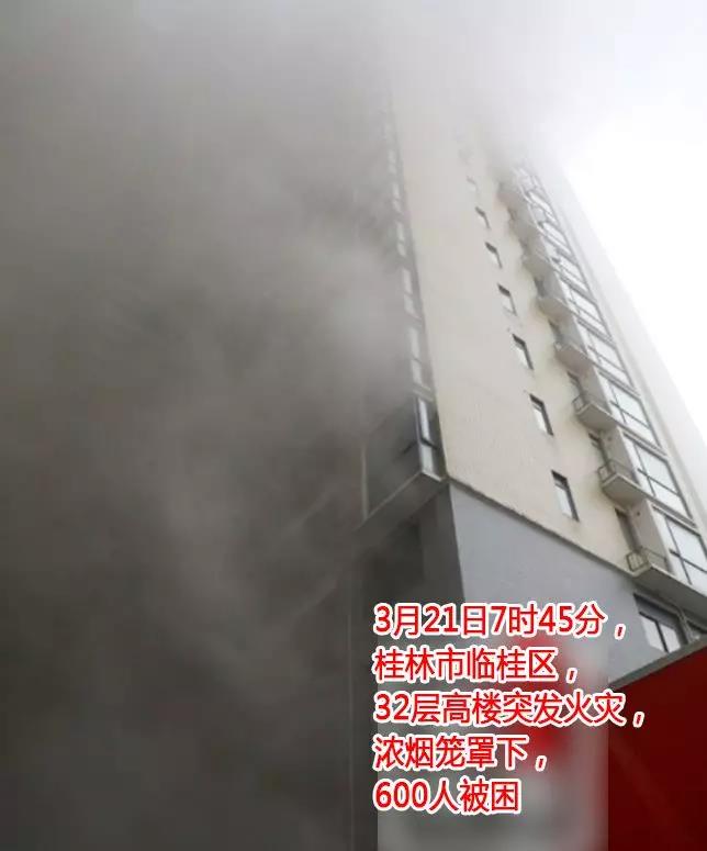 3月21日上午7時45分,桂林市臨桂區(qū)世紀(jì)東路奧林匹克領(lǐng)峰陽光小區(qū)突發(fā)火災(zāi),據(jù)悉,起火建筑為32層鋼筋混泥土結(jié)構(gòu)的高層住宅,兩棟相連共有558戶,起火部位位于1棟2單元3樓電纜井,起火現(xiàn)場濃煙幾乎已經(jīng)將整棟建筑籠罩,樓上有大量居民被困,呼喊求救聲此起彼伏,一旦這些被困居民因火災(zāi)濃煙而產(chǎn)生恐慌情緒和引發(fā)中毒現(xiàn)象,情況將變得萬分危急、難以預(yù)料……