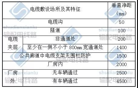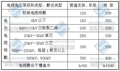 (4)當(dāng)設(shè)計(jì)無(wú)要求時(shí),電纜支架最上層和最下層至溝頂、樓板或溝底、地面的距離不小于下表的規(guī)定。