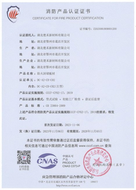 防火封堵板材(CH-C03)3C認證證書