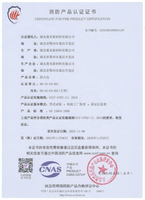 電纜防火涂料(CH-T01)3C認證證書